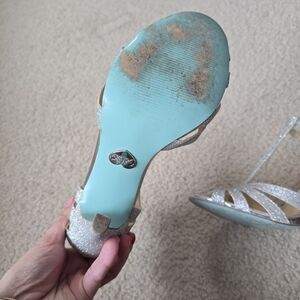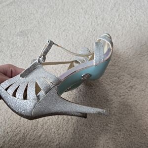 Betsey Johnson Shoes Silver Glitter T-Strap Heels | Color: Silver