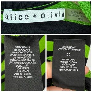 Alice + Olivia Landi Striped Wool Blend Mini Dress in Parrot / Black | Medium