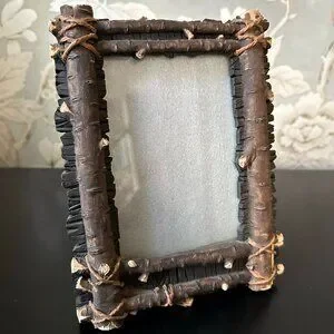 Add a rustic touch to your décor with this charming picture frame. For decades I thought this was real natural wood but just discovered that it is not. Upon deeper inspection, it appears to be molded. Fooled me! And it will fool you too!