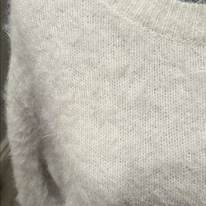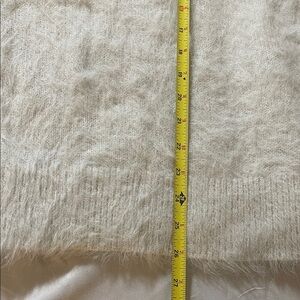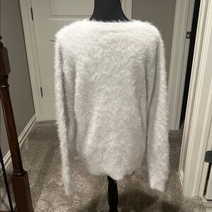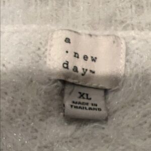 A New Day women’s fuzzy knit sweater in a soft cream tone, size XL. This sweater features a plush, brushed texture that gives it a cozy, lightweight feel while still providing warmth. Designed with a classic crew neckline, ribbed collar, cuffs, and hem, and a relaxed straight fit that layers comfortably over tops or under jackets. The neutral color makes it easy to pair with denim, skirts, or casual trousers for everyday wear. Ideal for fall and winter styling, offering both comfort and a clean, versatile look. T10, B16