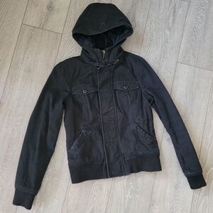 TNA Fitted Bomber Jacket in good condition. Size Medium, removable hood. Great for spring/ fall.