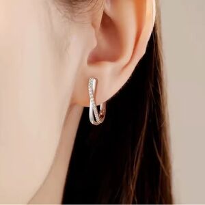 Stylish silver earrings with a crystal twist design. Ideal for adding sparkle.