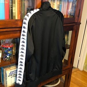 Sleek black windbreaker with iconic white Kappa logo details. Perfect for casual wear.