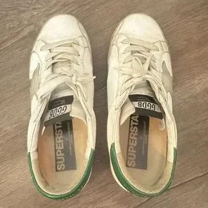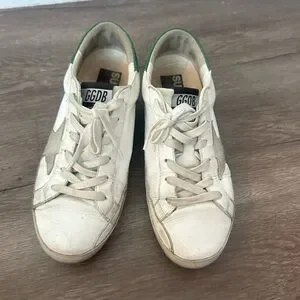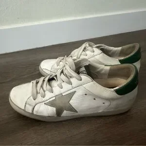 Golden goose sneakers in white and green. Classic. Women’s size 8