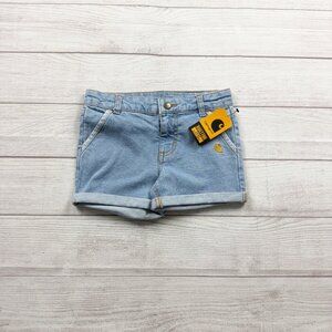 Carhartt girls shorts, denim shorts size 5, light wash jean shorts kids, rolled cuff denim shorts, stretch denim shorts girls, summer shorts girls, casual kids denim, Carhartt kids clothing, gently used kids clothing, sustainable kids clothes