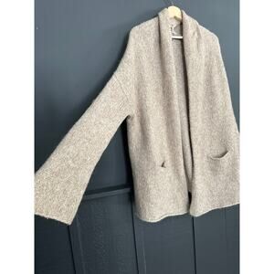 360 Sweater Italian Yarn Alpaca Wool Chunky Knit Oversized Cardigan Oatmeal Sz S