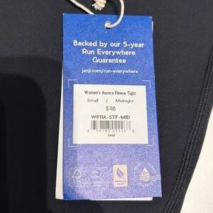 Janji Women’s Aurora Fleece Tight in black, size Small. These are insulated running leggings designed for cold-weather training, trail runs, and winter workouts.