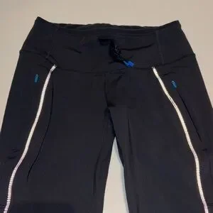 Made with a soft fleece interior for warmth and a smooth, stretchy exterior for performance. Features secure zip pockets with reflective trim, adjustable drawstring waist, and a flattering athletic fit.