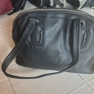 Chic black shoulder bag with sturdy handles. Perfect for daily use. Stylish and versatile.