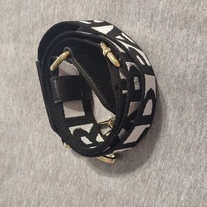 Elevate your favorite handbag with this sleek **Karl Lagerfeld** designer strap! Featuring a bold black-and-white woven logo design, this strap adds an effortlessly chic, high-fashion touch to any purse. The gold-tone hardware and black leather accents give it that classic, polished look Karl is known for.