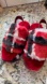 Make a bold statement with these iconic UGG slipper-sandal hybrids! Featuring a vibrant red, black, and white tartan plaid pattern, these slides are as stylish as they are cozy.