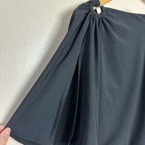 NOTES: Elastic waist, flutter sleeve, gathered material with ring on right shoulder, fully lined