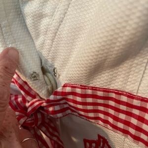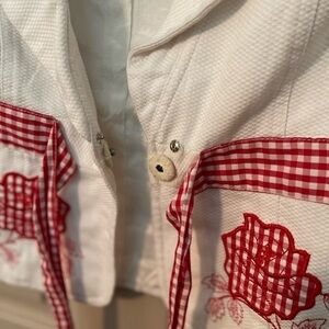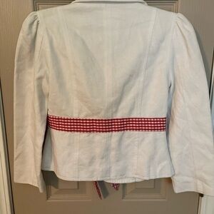 Betsey Johnson off white blazer with red gingham trim. Y2K
