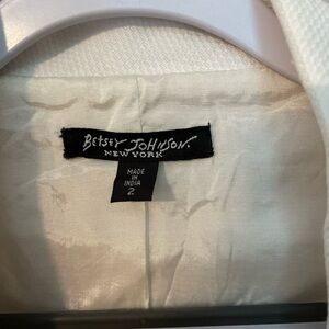 Betsey Johnson off white blazer with red gingham trim. Y2K. Beautiful blazer features applied roses & attached belt in red gingham checks. Excellent condition. No tears or stains. Rare find.