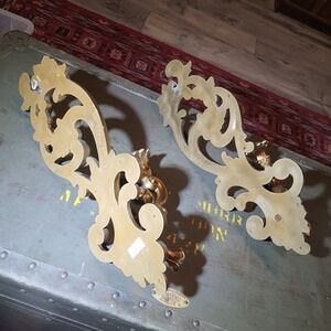Vintage 2Pc Candle Sconce Homco 1971 Wall Decor 15" Gold Rococo USA Set #4118
