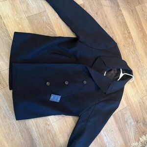 Classic like new Abercrombie & Fitch navy peacoat for a timeless look. Perfect for any occasion. Made with Italian fabric. Size XXL. Thanks. New condition. Still has extra button tags attached.