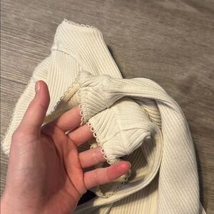 Soft hugging ribbed material with delicate picot trim