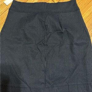 This is a stylish Creasant Drive skirt in size 4X with a polka dot pattern in white and black. It features snap closures and falls under the A-line style category. The skirt is suitable for various occasions such as parties, casual outings, and business settings. It is designed for plus-size women and can be worn in all seasons.