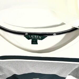 Lauren Ralph Lauren Women’s Black White Striped Crewneck Short Sleeve Tee | XL