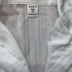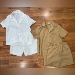 Elegant white and brown shirt and shorts set bundle with textured design. Ideal for versatile styling. Sold as a bundle.