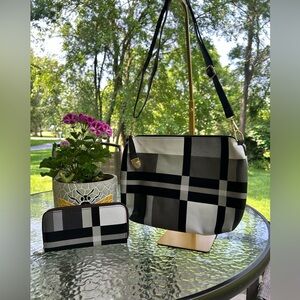 ❤️Black and White Geometric Crossbody Bag- and Wallet.