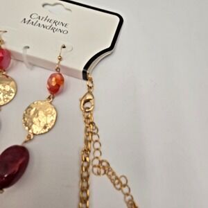 Catherine Malandrino Adj Necklace Earrings Set Layered Pink Iridescent Gold Tone