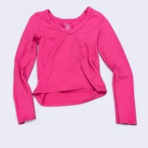 Fuchsia ribbed top with V-neck. Ideal for everyday style. “On Wednesdays we wear pink” energy!