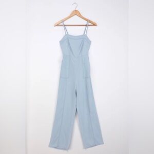 Lulus Simply Darling Light Blue Chambray Tie-Back Cutout Jumpsuit. XL.