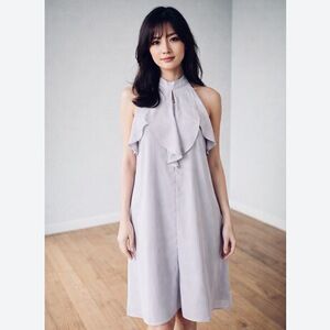 Cocktail dress Ruffle halter neckline flowy shift knee length dress