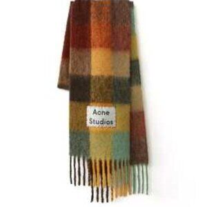 The Acne Studios Classic Mohair/Alpaca Scarf is an oversized, multicolored accessory with a plaid pattern and fringe accents. Made from a luxurious blend of mohair and alpaca wool, this knit scarf measures 8 feet in length and 11 inches in width. Perfect for the winter, fall, and spring seasons, this unisex piece from Acne Studios adds a touch of style and warmth to any outfit, thanks to its unique design and high-quality material.