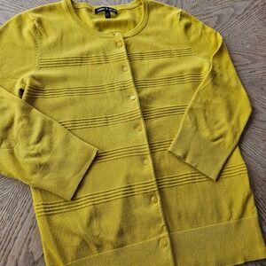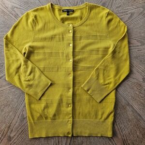 Cable & Gauge Cardigan Womens Small Yellow 3/4 Sleeve Textured Knit Sweater