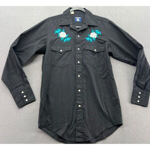 Chute #1 Shirt Mens Black L Western Pearl Snap Shirt Embroidered Rose Floral