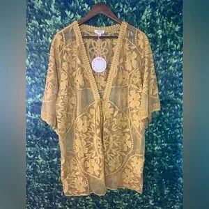 Umgee Mustard Embroidered Kimono