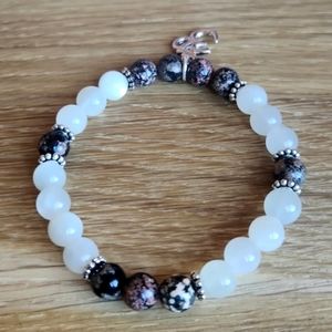 Moonstone & Mexican Red Snowflake Obsidian Beads Bracelet, Stretch Hand Crafted