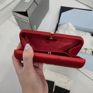 BNIB Authentic Prada Red Satin Box Clutch Bag
