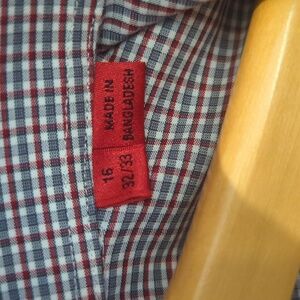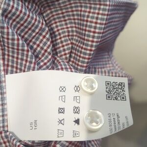 Gorgeous dress shirt, worn a few times kept with care and dry cleaned. Elegant plaid design with button-down style. Forn a few times and kept with care.