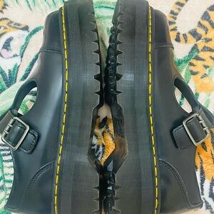 Dr. Martens Black T-Bar Shoes with Yellow Stitching