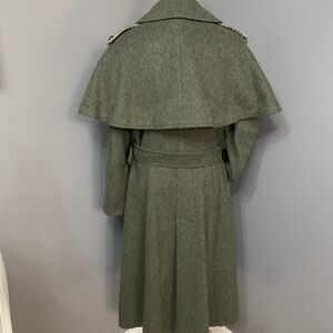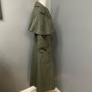 Vintage Rare 70s-80s German Fitted Loden Wool Green Womens Long Cape Coat US 8