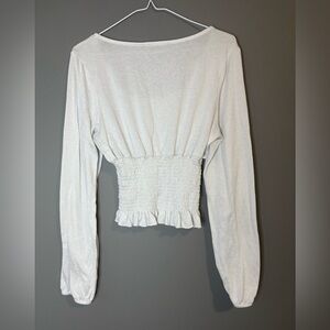 Revamped size M Women's White Smocked Top, long sleeve, ruched waist