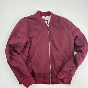 Cozy maroon jacket with soft lining. Features a sturdy zipper.