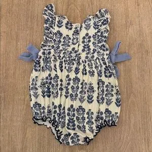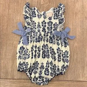 Pink Chicken Floral Bow Bubble Romper Onesie Size 6-12 Months