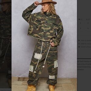 Bohemian boho country camouflage camo patchwork western barrel jeans denim joggers