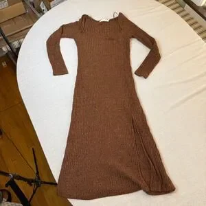 ASTR the Label Rust Brown Ribbed Knit Square Neck Side Slit Midi Dress Medium
