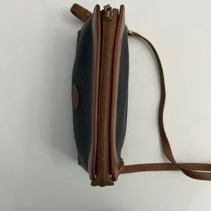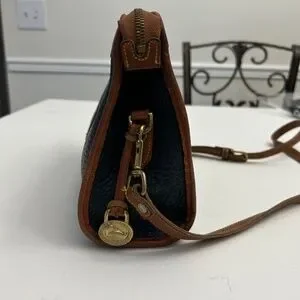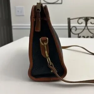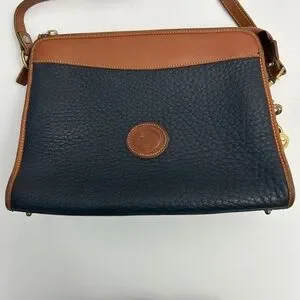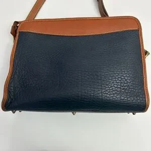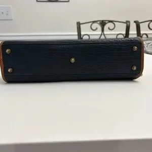 Vintage Dooney & Bourke All Weather Leather Crossbody/Satchel in Dk Blue/Tan
