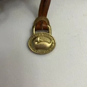 • Signature leather duck logo patch on the front and Brass Charm