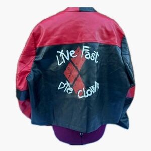 DC Comics (Unisex) Suicide Squad Harley Quinn Live Fast Die Clown Leather Jacket XL