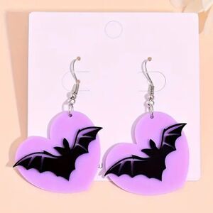 Adorable Lavender “I Love Bats” Acrylic Earrings Halloween Goth Lightweight