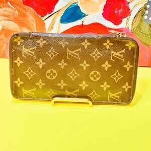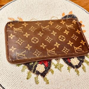 Louis Vuitton Monogram Zipper round Large size Elegant wallet, note some zipper calls out the zipper is cracked but the is working the final price reflects the condition of the wallet, clean interior no sticky no odors.