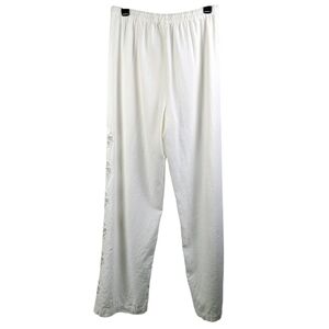 Camila Coelho Linen Blend Pants Floral Eyelet Cutouts At Sides White M NWT