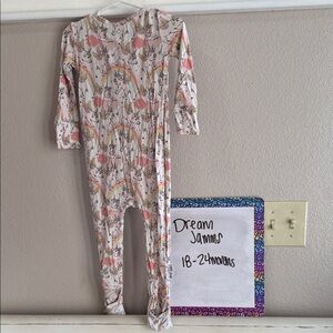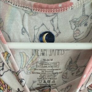 Charming unicorn-themed footie for kids, featuring a delightful pink and white design. Perfect for cozy nights and imaginative play.